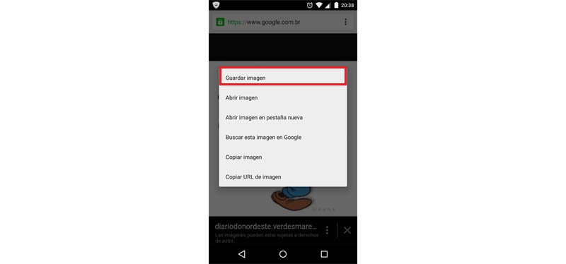 1) Al igual que en la PC seleccionas la imagen que deseas compartir, mantienes presionado tu dedo sobre ella por unos instantes y la guardas en tu dispositivo.