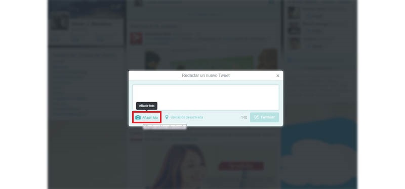 2) Vas a tu cuenta de twitter, seleccionar ‘Twittear’ y luego ‘Añadir foto’.