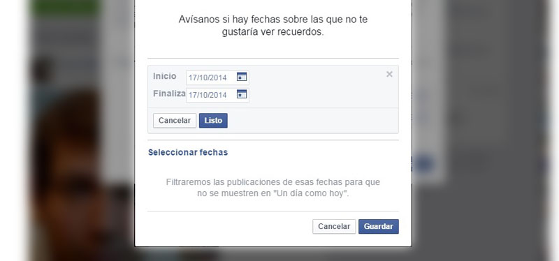 También es posible evitar recuerdos por fechas. Selecciona la otra opción ‘Fechas’