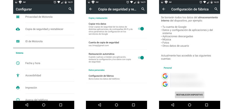 - Copia de seguridad y reinicio.
