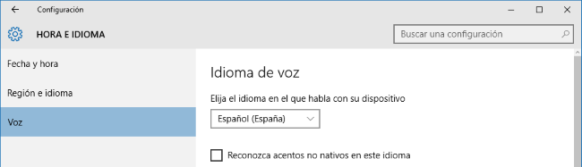 6) Finalmente, vamos a la sección de ‘Voz’ y seleccionamos Español (España).