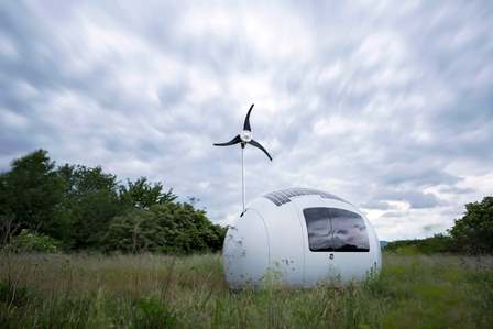 Pesa unos 1.500 Kgs y genera su propia energía mediante paneles solares y turbinas eólicas. Conoce más de las casa del futuro, Ecocapsule.