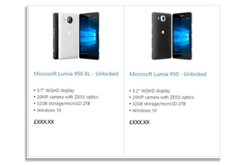 Según se informa en el sitio web The Verge, en la versión inglesa de Microsoft Store se encontraron dos terminales listados bajo Windows 10, específicamente, el Microsoft Lumia 950 y Lumia 950 XL.