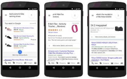 Se vale de nuestra ubicación para aprovechar el mayor tiempo que los usuarios pasan en sus smartphones, de modo que junto con los avisos que aparecen en los resultados de búsquedas, también podremos conocer la calificación de diversos productos y su disponibilidad en tiendas cercanas.