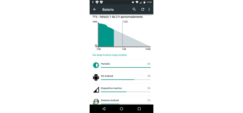 Finalmente, verifica el gráfico de uso de la batería para intentar relacionarlo con alguna aplicación o servicio específico. Abre los gráficos en “Batería”.