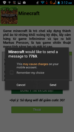 De apariencia casi idéntica al juego original, Minecraft.SMSreg intentar convencer a la víctima a registrarse en una serie de mensajes SMS con cargo. También instala una versión vieja del juego original, pero inserta una línea de código de una red publicitaria asiática.