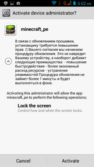 Cuando instalas Minecraft.Bot se exhibe un mensaje en ruso que informa al usuario que la app no es compatible con el sistema operativo y remueve el icono de la pantalla de inicio. Esta acción es solo para engañar al usuario, ya que la aplicación está funcionando en segundo plano.