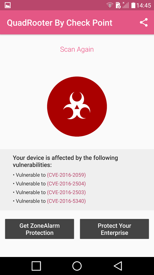 Si te interesa saber si tienes estas vulnerabilidades en tu dispositivo, Check Point publicó una aplicación específicamente para la detección del QuadRooter. La app la puedes encontrar aquí.