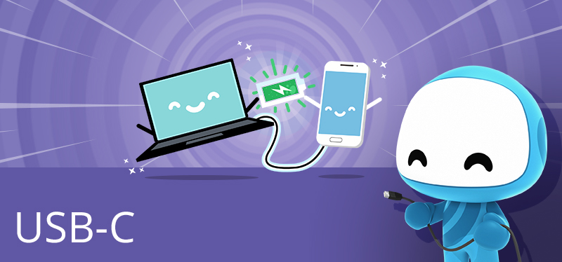El USB-C es una actualización de los tradicionales conectores USB. Se diferencia por ser de tipo “C” y poseer otras funciones, que además de la transferencia de datos, permite compartir internet entre dispositivos, señal de video y hasta corriente eléctrica.