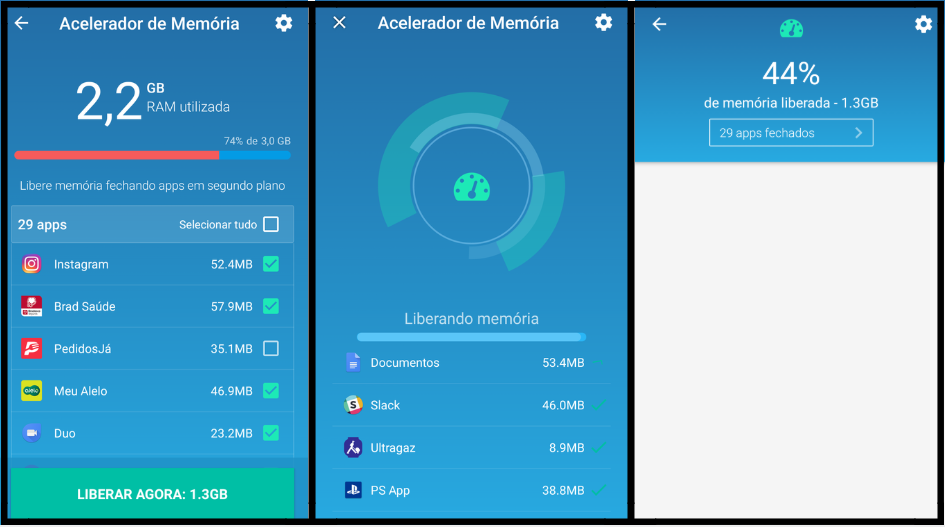 - Na tela principal, clique na opção Acelerador de Memória;