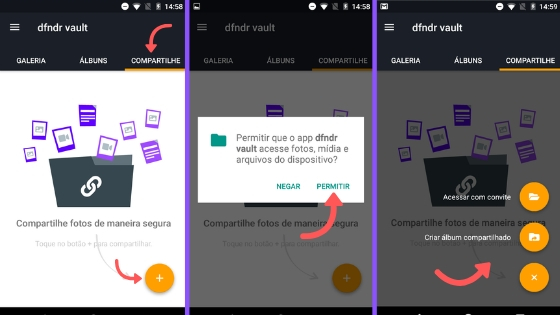 - Gravar vídeos e tirar fotos diretamente do dfndr vault: