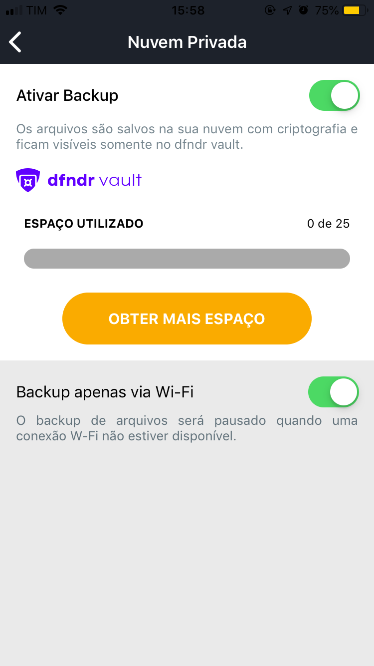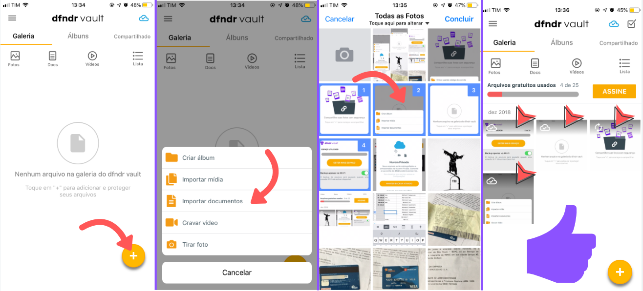- Pronto! Seus arquivos irão aparecer na tela do dfndr vault.