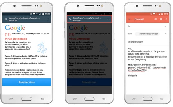 Queremos que os consumidores instalem nossos aplicativos porque valorizam nossos serviços e desejamos construir relacionamentos de longo prazo com nossos usuĂĄrios. Qualquer tentativa de enganar os consumidores para instalação dos nossos softwares Ă© 100% contrĂĄria a esses objetivos e Ă© algo que a PSafe nunca faria. Se vocĂȘ clicar acidentalmente em um alerta falso de vĂrus ou descobrir algum, pode nos ajudar a combatĂȘ-los realizando as seguintes açÔes: